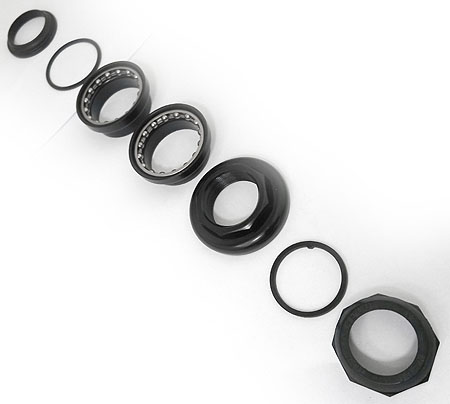dla ram z rurą sterową śr wewn 34 mm ( system 1-1/8" ) do zamocowania widelca 1" (rura widelca ok 27 mm) średnica zewnętrzna miseczki łożysk ok . 41,5 mm średnica zewnętrzna największej nakrętki 46 mm Zawiera elementy pokazane na zdjęciu (uwaga montażowa - głębsza bieżnia = dół)