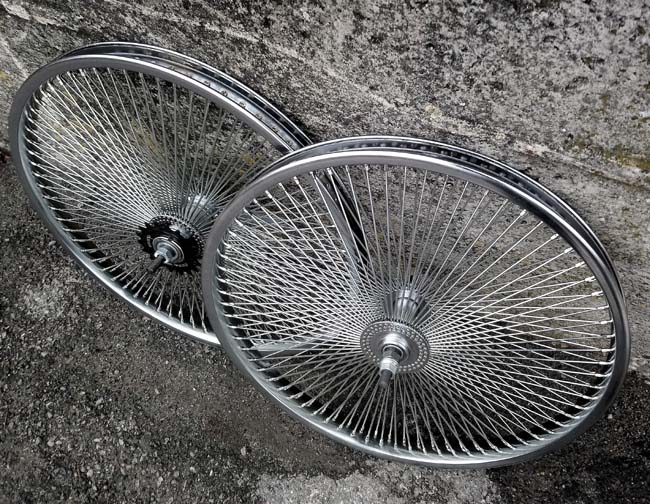 Przednie i tylne koło kompletne, obręcze stalowe, szprychy chrom, hamulec w pedale