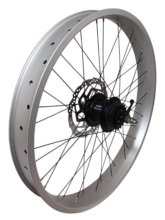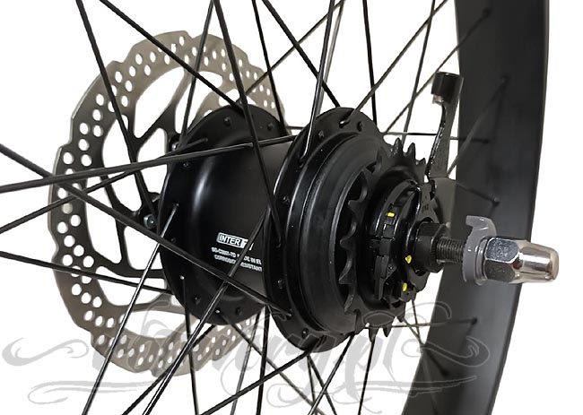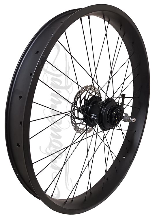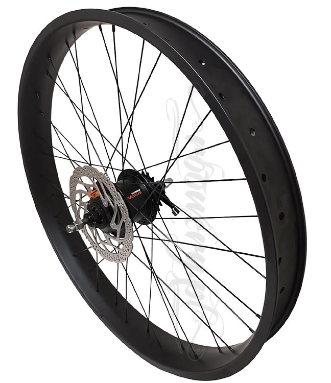 SZEROKIE KOŁO ROWEROWE 24" TYŁ z piastą siedmio-biegową O.L.D 135 mm Shimano Nexus Inter-7 tarczą hamulcową i zestawem manetka/linka