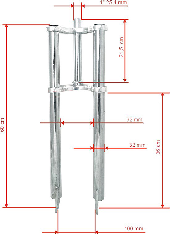 przy montażu widelca możliwa regulacja odległości półek - długości rury.